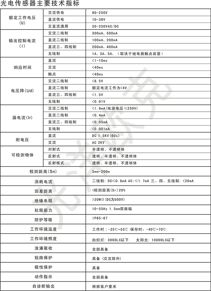 光电传感器技术参数