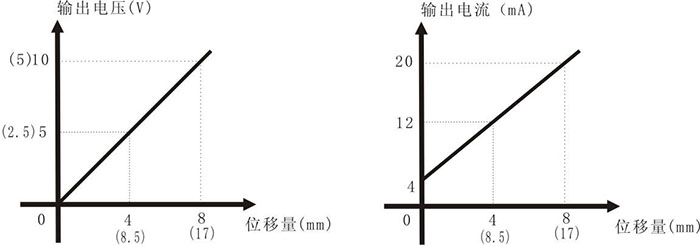 1. 量程: 0-8mm、 0-17mm